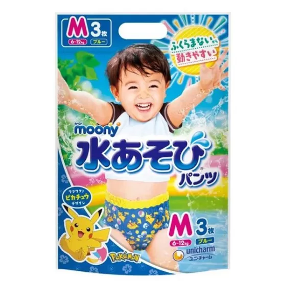 Japońskie pieluchomajtki do kąpieli MOONY, rozmiar M, 6–12 kg, dla chłopców, 3 szt.