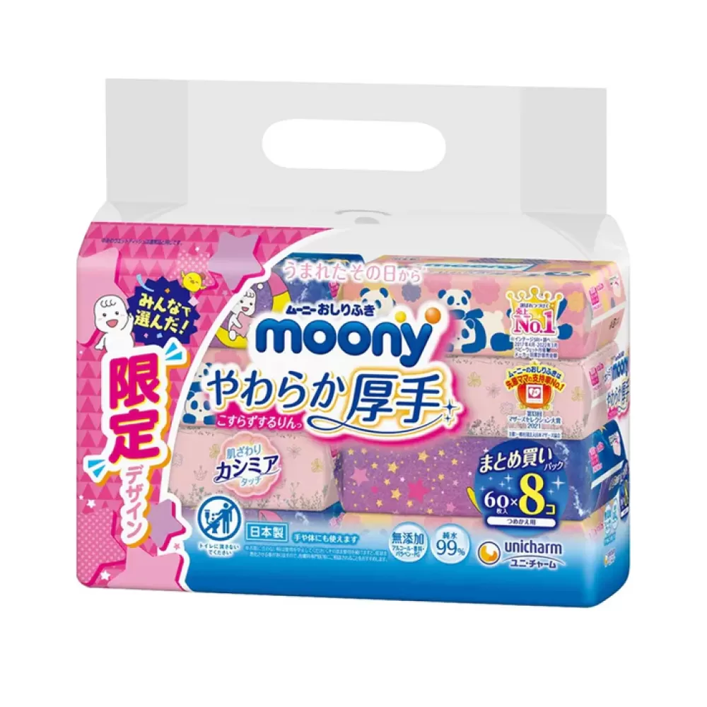 Moony – zestaw chusteczek nawilżanych do wrażliwej skóry, 8×60 szt.
